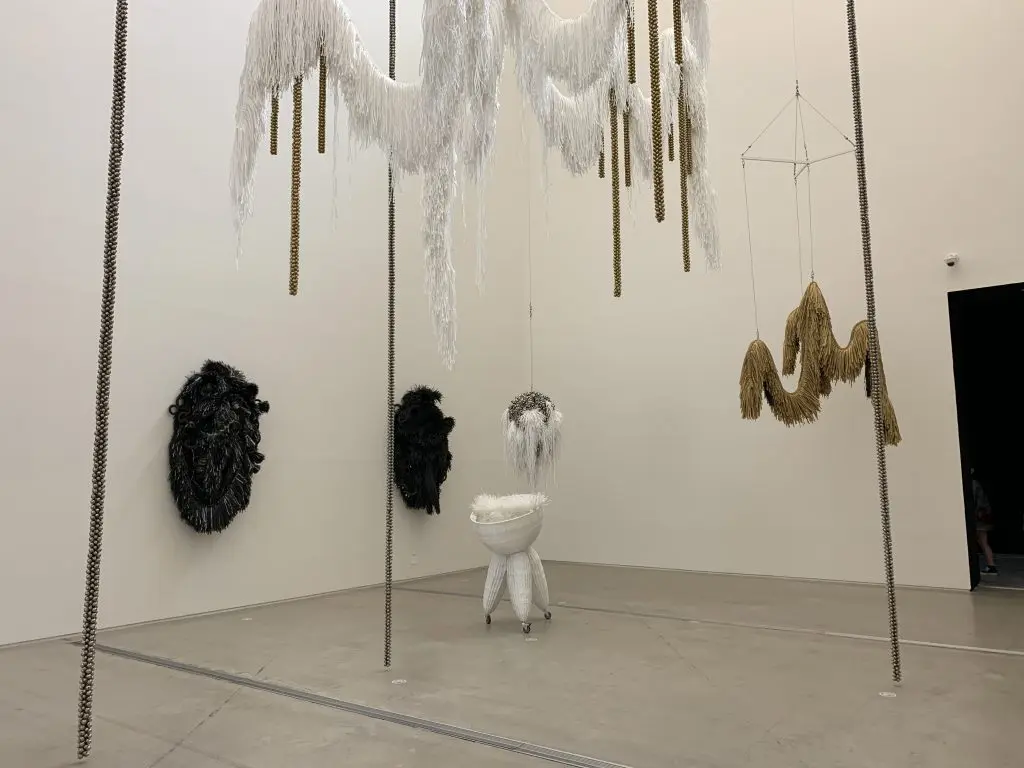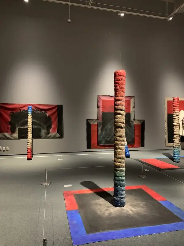 전통옹기를 쌓아 올린 <상장 오지탑>부터 성황당에 매달린 천 조각을 연상케 하는 <바람> 등의 작품에서도 무속신앙의 영향이 잘 나타나 있었다.
