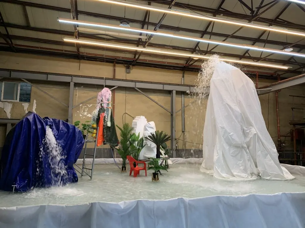 해체될 예정이었던 ‘정림건축 구 사옥건물’ 창틀을 뜯어내고 창에서부터 바닥까지 길게 늘어뜨린 캔버스 위에 물감주머니를 부어 완성한 작품이다.