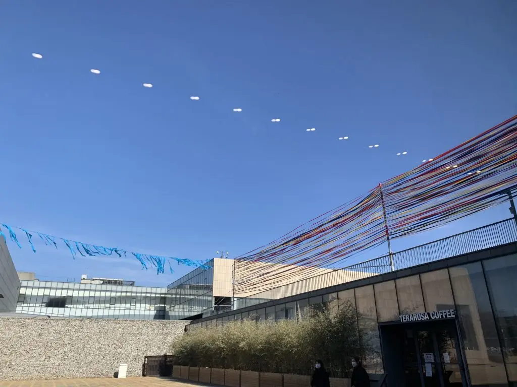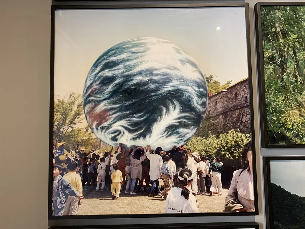 합성사진이 아닌가 생각되는 이 작품은 작가가 직접 5미터가 넘는 지구 모양의 풍선을 제작하여 시민들과 함께 진행했던 <지구행위 퍼포먼스> 이다.