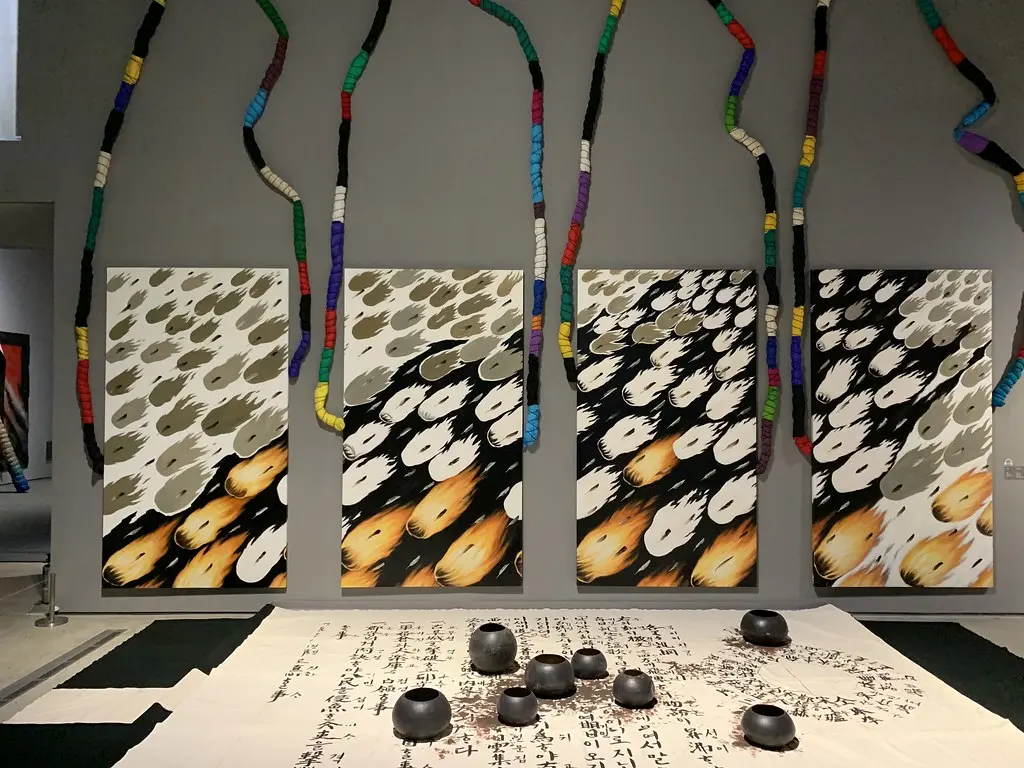 작가는 서구적인 것과 가장 대조되는 민속적인 것으로부터 많은 영감을 받았는데 전통설화에서 착안한 작품을 제작하거나 전통옹기와 같은 민속적인 재료들을 작품의 재료로 사용하기도 하였다.